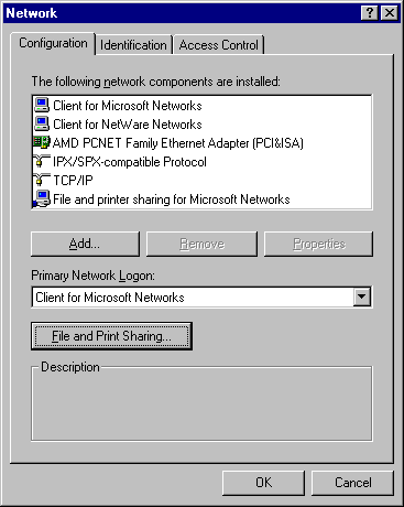 button, select Settings..., then Control Panel. Double-click the Network icon. You'll see a dialog box like this: